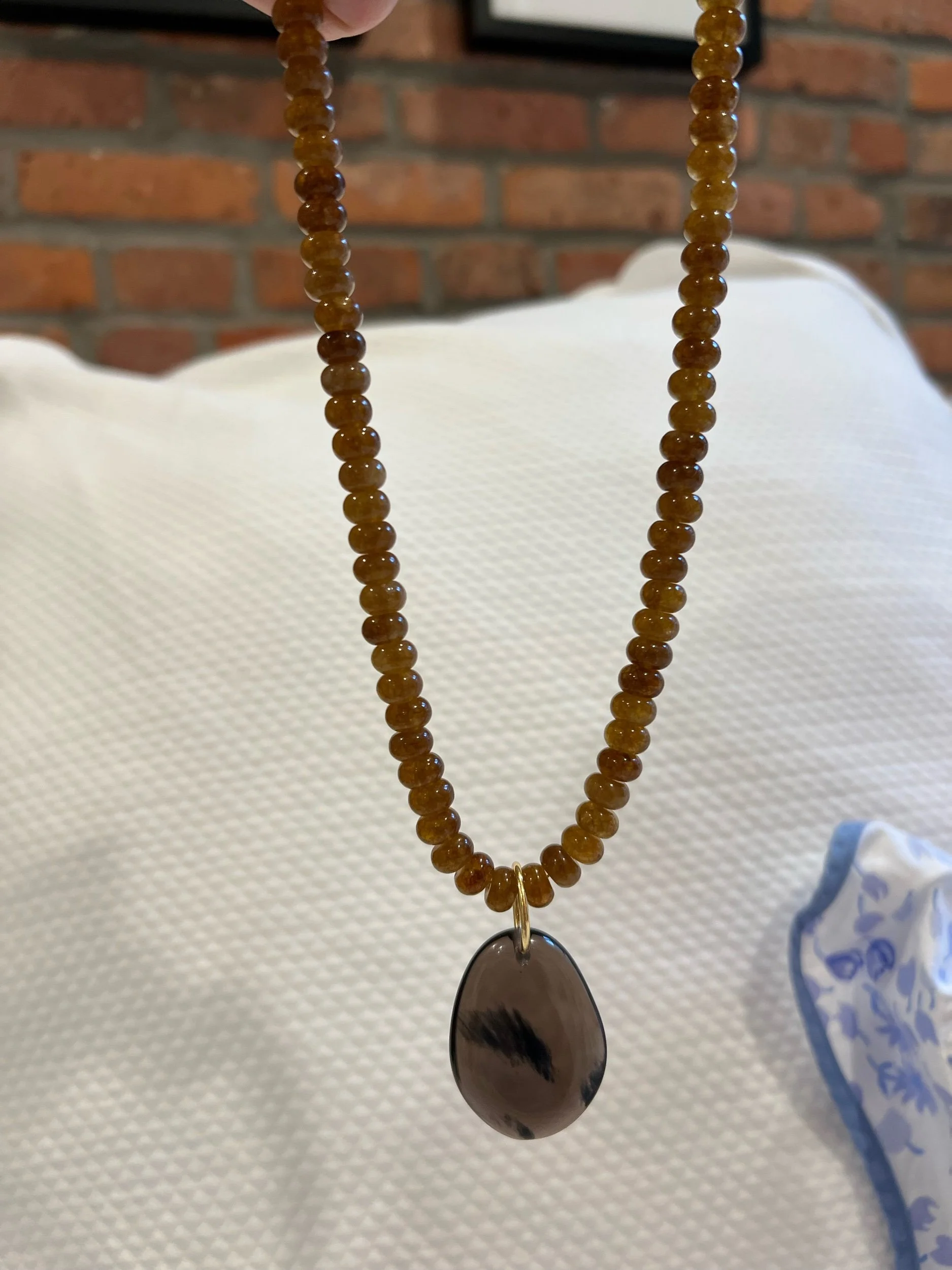 Aventurine Green Jade Necklace $150.00 Add To Cart Added! Olive Green Jade Necklace $150.00 Add To Cart Added! Necklace with Ammonite Pendant $175.00 Tiger Eye Pink Quartz Add To Cart Added! Graduated Green Jade Necklace $175.00 16” 18” Add To Cart Added! Aquamarine Necklace $150.00 Add To Cart Added! Navy Blue Necklace $150.00 Add To Cart Added! Navy-er Blue Necklace $150.00 Add To Cart Added! Ivory Fossil Necklace $150.00 Add To Cart Added! Smoky Quartz Necklace $150.00 Add To Cart Added! Tiger’s Eye Necklace $150.00 Add To Cart Added! Tiger’s Eye Necklace with Obsidian Pendant $175.00 Add To Cart Added! Smoky Quartz Necklace with Obsidian Pendant $175.00 Add To Cart Added! Garnet Jade Necklace $150.00 Add To Cart Added! Green Jade Necklace $150.00 Add To Cart Added! Amethyst Necklace $150.00 Add To Cart Added! Pale Pink Quartz Necklace $150.00 Add To Cart Added! Pale Pink Quartz Necklace with Heart $175.00 Add To Cart Added! Green Jade Necklace with Averturine Heart $175.00 Add To Cart Added! Smoky Quartz Necklace with Carnelian Heart $175.00 Add To Cart Added!